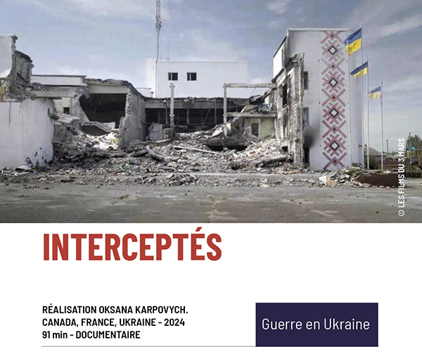 “Interceptés” confronte deux mondes superposés : d’une part, des images silencieuses et poétiques de la vie ukrainienne à l’épreuve de l’invasion et d’autre part, des enregistrements d’appels, interceptés sur le sol ukrainiens, de soldats russes au front à leurs proches en Russie. Ces voix livrent la banalité du crime, la peur, la propagande et la haine transmise de génération en génération. Les récits de violences se heurtent aux tentatives des civils de continuer à vivre. Le film est un témoignage donnant voix à ceux qui subissent et exposent la brutalité de ceux qui infligent.