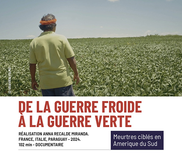 La frontière entre le Paraguay et le Brésil est devenue un désert vert : c’est le berceau de la « république du soja », monoculture délétère pour les écosystèmes. Ce territoire est marqué par une double histoire : celle de la violence politique des années 1970 liée à l’opération Condor, qui a éliminé des milliers de “subversifs” et a généré un accaparement des terres ; celle, aujourd’hui, de l’assassinat mené par l’agrobusiness de milliers d’écologistes et de défenseurs de la terre. Le film confronte passé dictatorial et présent écologique, mêlant témoignages, archives et visites sur le terrain.